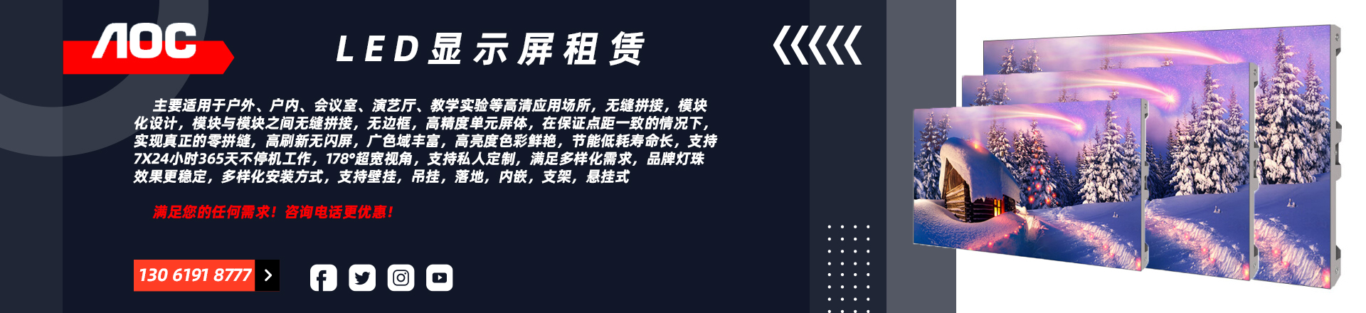 AOC P3 室內(nèi)全彩led顯示屏 無縫拼接 舞臺(tái) 會(huì)議室 展廳 商場(chǎng) 廣場(chǎng) 戶外廣告電子屏 商用辦公大屏幕